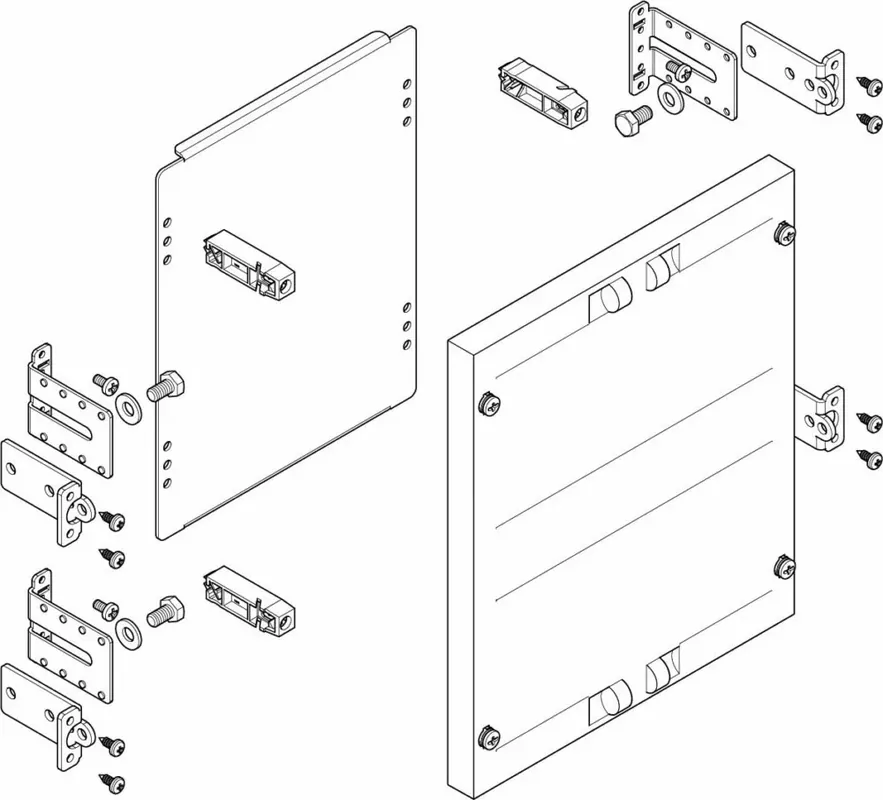 Flaches Modul für Montageplatte,ab Gehäusetiefe 160 mm,Breite 250 mm,Höhe 300 mm,NT-Profil ja,ST-Profil ja,PLE 24,VPE 1,Modulbausätze Montageplatten,Modulbausatz in flacher oder tiefer Bauform,Mit stufenlos tiefenverstellbarer Montageplatte (2 mm verzinktes Stahlblech) und geschlossenerAbdeckung,Maximales Einbaumaß 158 mm (MF,),190 mm (MT,),