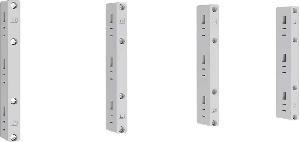 Sammelschienen-Bausätze mit 4 Sammelschienenträgern,1250 mm Breite,Ausführung für tiefe Module mit Sammelschienenträger FST703N (L1-L3),FST601N (N + PE),Höhe 300 mm,Bemessungsstrom (A) 160-630,Kupfergröße L1-3 ohne,Polzahl 3,VPE 1,Sammelschienen-Bausätze,60 mm Schienenabstand,Einbaumaß 32/70 mm und N/PE,Sammelschienen-Bausatz in flacher (MF,und MX,) oder tiefer (MT) Bauform zum Einbau in Modulbausätze und MontageAuf das Traggerüst (NT/ST),Vorbereitet für die Bestückung vonABN NH-Sicherungslasttrennschaltern NH1-3,NH00,NH000 sowie D02-Reitersicherungselemente und,NH00-Sicherungslastschaltleisten und SammelschienenklemmenInkl,Sammelschienenträger und Sammelschienenkonsolen mit oder,ohne vorkonfektionierten Kupferschienen,Einbaumaß 70 mm,Geeignet für NH-Sicherungslasttrennschalter,Gr,000/00/NH1-3 und NH00-Sicherungslastschaltleisten,