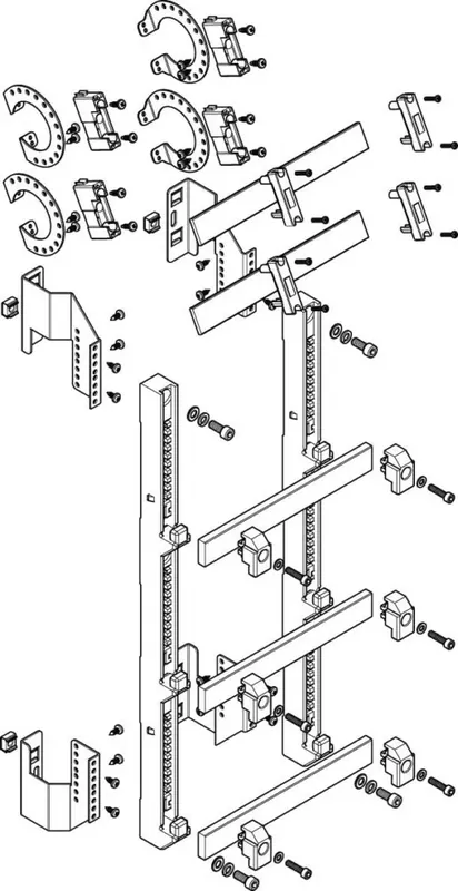 Sammelschienen-Bausätze mit 2 Sammelschienenträgern,250 mm Breite,Ausführung für tiefe Module mit Sammelschienenträger FST903N und Konsole FSK903TN (N + PE siehe oben),Höhe 1050 mm,Bemessungsstrom (A) 630 (573),Kupfergröße L1-3 30 x10 mm,Polzahl 5,VPE 1,Sammelschienen-Bausätze,185 mm Schienenabstand für NH-Sicherungslastschaltleisten,Sammelschienen-Bausatz in flacher oder tiefer Bauform zum Einbau in Modulbausätze und MontageAuf das Traggerüst (ST),Vorbereitet für die Bestückung vonABN NH-Sicherungslastschaltleisten NH1-3,NH00 und SammelschienenklemmenInkl,Sammelschienenträger und Sammelschienenkonsolen mit oder ohne vorkonfektionierten Kupferschienen,Ab 340 mm tiefen Gehäusen,Verwendeter Sammelschienenträger bei 1000 A-Bausätzen (5-polig):,N: FST901N,PE: FST601N,Verwendeter Sammelschienenträger bei 630 A-Bausätzen (5-polig):,N: FST601N,PE: FST601N,Einbaumaß 150 mm,Geeignet für NH-Sicherungslastschaltleisten,der Größe NH00 und NH1-3,