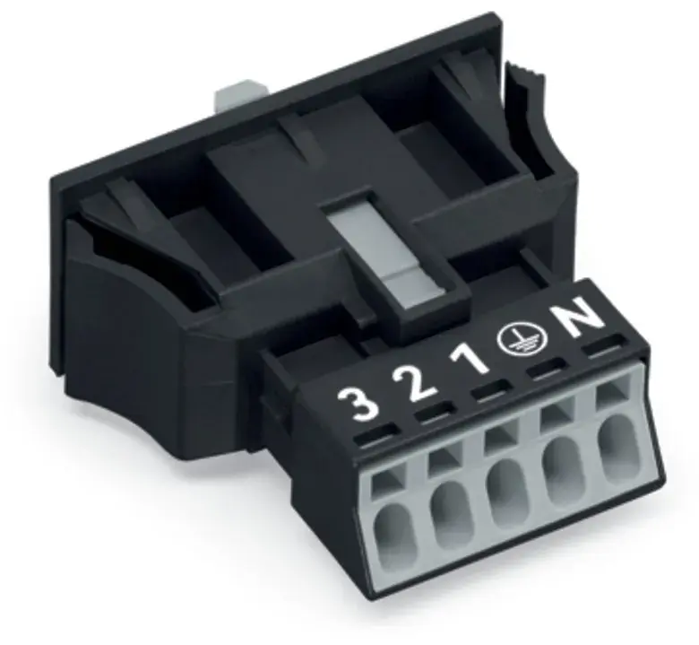 Hersteller:WAGO GmbH & Co. KGBezeichnung:Snap-In-Stecker 5-polig,Kod. A,swTyp:890-715Bemessungsspannung:400 VBemessungsstrom:13 APolzahl:5Schutzart (IP):IP20Anschlussart:FederzuganschlussAusführung:SteckerEinbauvariante:Snap-In/EinschraubteilSteckrichtung:geradeNeigungswinkel:0 °Gewindeanschlussmaß:kein GewindeanschlussAnschlussquerschnitt (feindrähtig):0,25..1,5 mm²Anschlussquerschnitt (eindrähtig):0,25..1,5 mm²Anzahl der Anschlüsse je Pol:1Pol-Kennzeichnung:3, N, PE, 2, 1Mechanische Codierung:jaFarbe der Codierung/Kontakteinsatz:schwarzFarbe des separaten Adapterstücks:ohne AdapterstückGehäusefarbe:schwarzArt der Verriegelung:im Steckverbinder integriertMax. Dauertemperaturbeständigkeit Kontaktteil:85 °CMax. Dauertemperaturbeständigkeit Zugentlastung:105 °CWerkstoff des Gehäuses:Polyamid (PA)Halogenfrei:jaBrandlast:0,05472 kWhKontaktmaterial:CuSnOberflächenbehandlung Kontakte:verzinntVerschmutzungsgrad:3Durchgangswiderstand:1 mOhmBemessungsstoßspannung:6 kVLänge:39,85 mmHöhe:17,5 mmBreite:35,5 mm