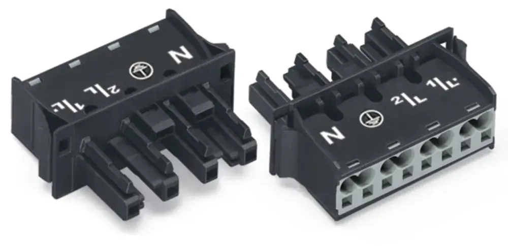 Die Federleiste/Buchse WINSTA® MIDI Bemessungsstrom 25 A ist die steckbare Lösung für Ihre Anwendung im Schaltschrank, beim Leuchtenanschluss oder auf der Leiterplatte. Egal, ob auf der Leiterplatte, im Schaltschrank oder für den Leuchtenanschluss mit Installationssteckverbindern von WAGO erstellen Sie den Anschluss an vielfältige Anforderungen im Handumdrehen. Die mechanische und farbliche Kodierung der Installationssteckverbinder gewährleistet eine fehlerfreie Installation der einzelnen Komponenten Fehlsteckschutz inklusive. Der Installationssteckverbinder ist gemäß der Schutzart IP20 geschützt (In gestecktem Zustand: IP2xC (Diese Installationssteckverbinder sind nicht für den Einsatz in leicht zugänglichen Bereichen vorgesehen!)). Das bedeutet, dass man mit dem Finger nicht an spannungsführende Kontaktelemente gelangen kann. Der Installationssteckverbinder WINSTA® MIDI mit Kodierung A in Schwarz oder Weiß wird normalerweise für allgemeine Netzanwendungen in der Energieverteilung genutzt. Der Installationssteckverbinder ist für eine Spannungslast bis 25 A ausgelegt. Sie kann deshalb auch für leistungsstarke Verbraucher verwendet werden. Vollkommene Flexibilität bei der Installation von Anwendungen gewährt Ihnen unsere Produktfamilie WINSTA® MIDI. Sie gewährleistet durch die Push-in CAGE CLAMP®-Federanschlusstechnik eine zeitsparende und fehlerfreie Installation, die unterschiedlichsten Anforderungen flexibel gerecht wird. Die Installation des Snap-Ins erfolgt durch Einrasten. Dank der Verriegelungsklinke ist dies ohne Verschraubung intuitiv und sicher möglich.